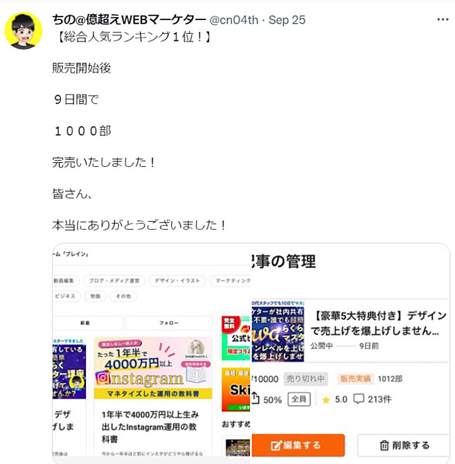 自己商品が掲載されると